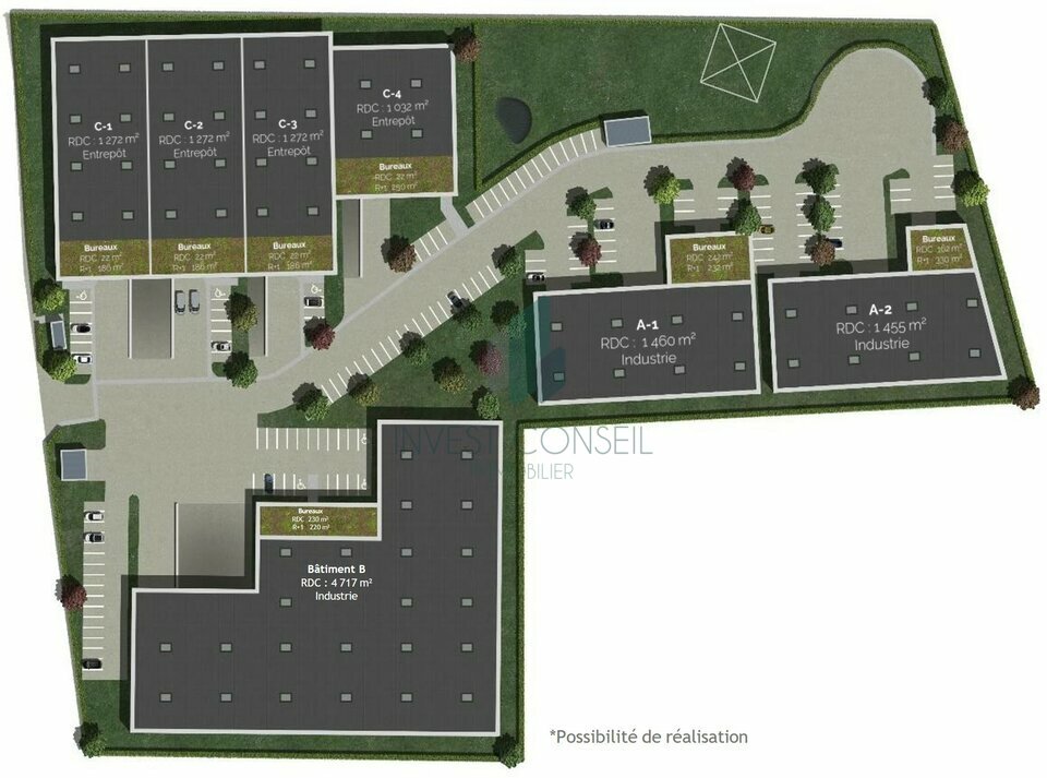 INVEST CONSEIL vous propose à la vente des bâtiment clés en main d'une surface allant de 1 800 m² à 6 000 m² situés dans la ZAC du Chemin herbu de PERSAN.